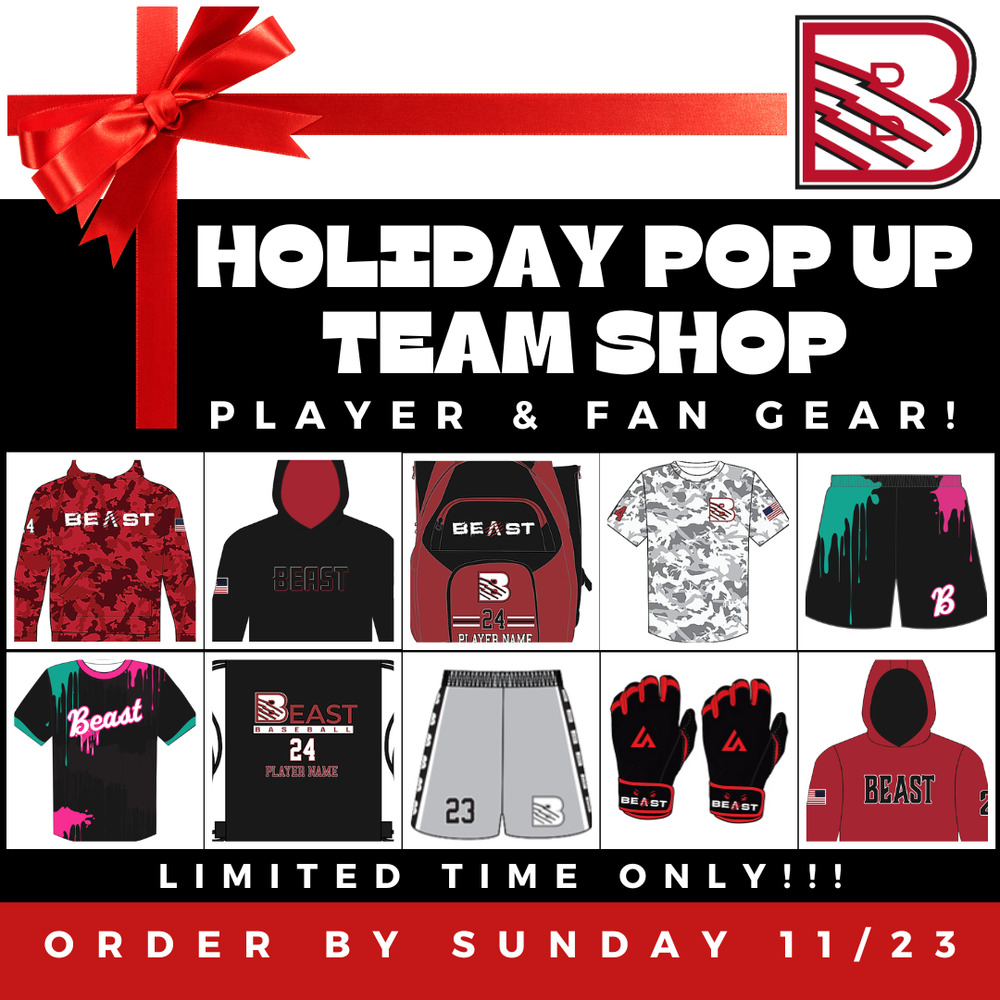 The BEAST Holiday Pop-Up Shop is now open! Customizable items for your favorite players and fans! From shorts to hoodies to bat bags and more - there's something for everyone - new styles and old favorites! Hurry though these items are available online only and will not be available once...