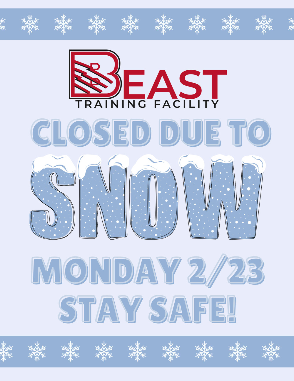 BEAST Training Facility will be closed on Monday, February 23rd due to snow. All lessons, clinics and team training are canceled for the day. Stay safe!...
